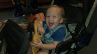 I asked Landon to smile and this is what he did. A lady told me "she is such a good baby" Oh yes once again I get that response even when he is wearing all blue.